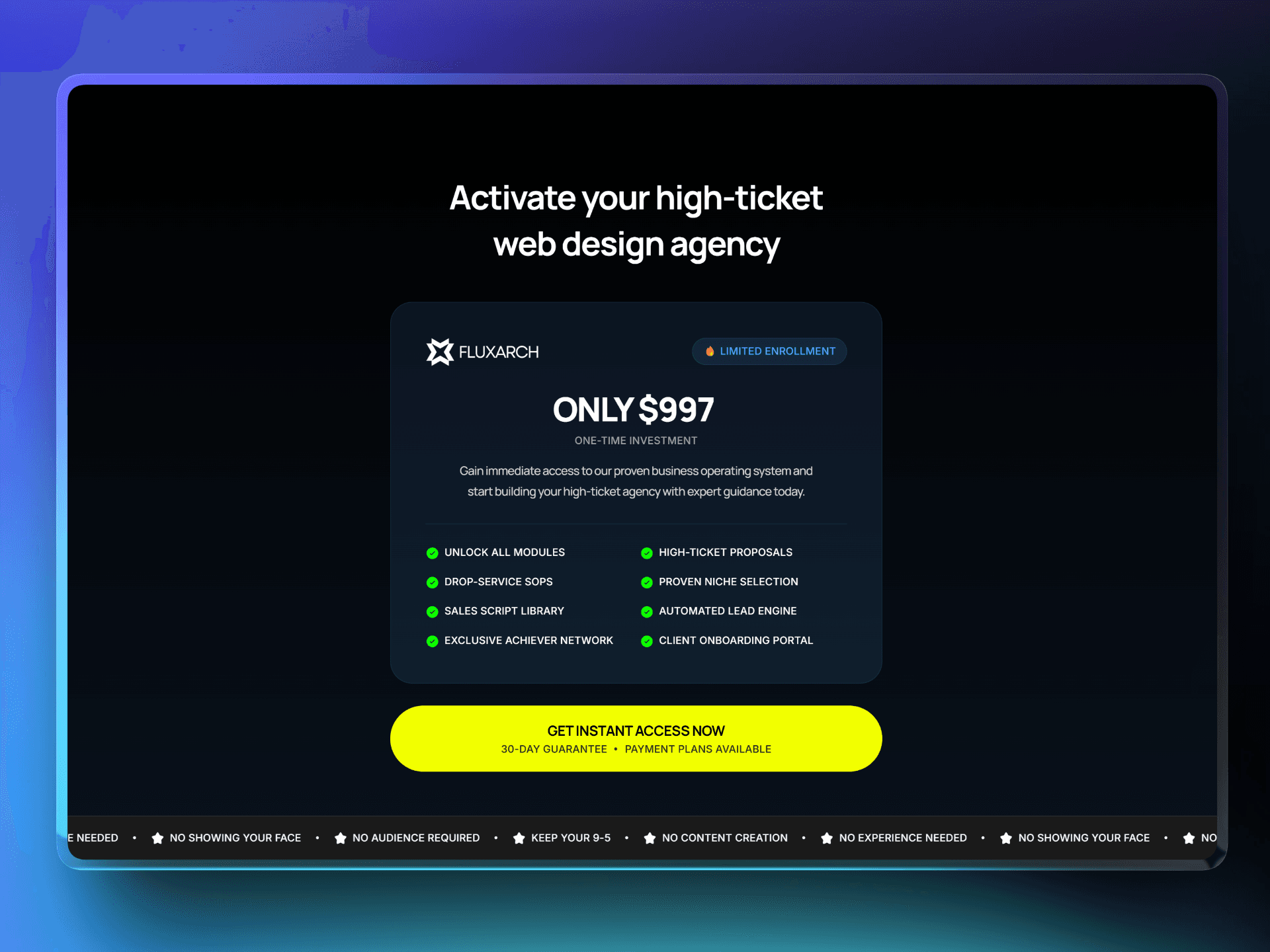 FluxArch is a high-converting Framer template for consultants and coaches. Build your VSL sales funnel with this elite infrastructure designed to scale high-ticket offers through proven sales psychology.